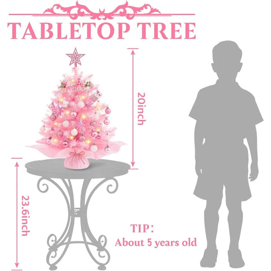 20in Mini Christmas Tree with Lights Pink Small Christmas Tree Artificial Tabletop Xmas Decor Holiday Decoration for Home Offic