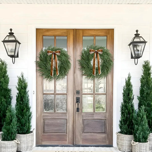 Christmas Wreaths Set of 2, 24 Inch Norfolk Pine, Ideal for Front Door, Festive Seasonal Decor