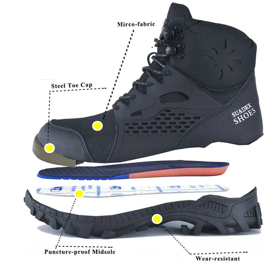 SUADEX Men Work Safety Shoes Steel Toe Cap Anti-Smashing Puncture Proof Construction Work Boots Non-Slip Breathable Work Shoes