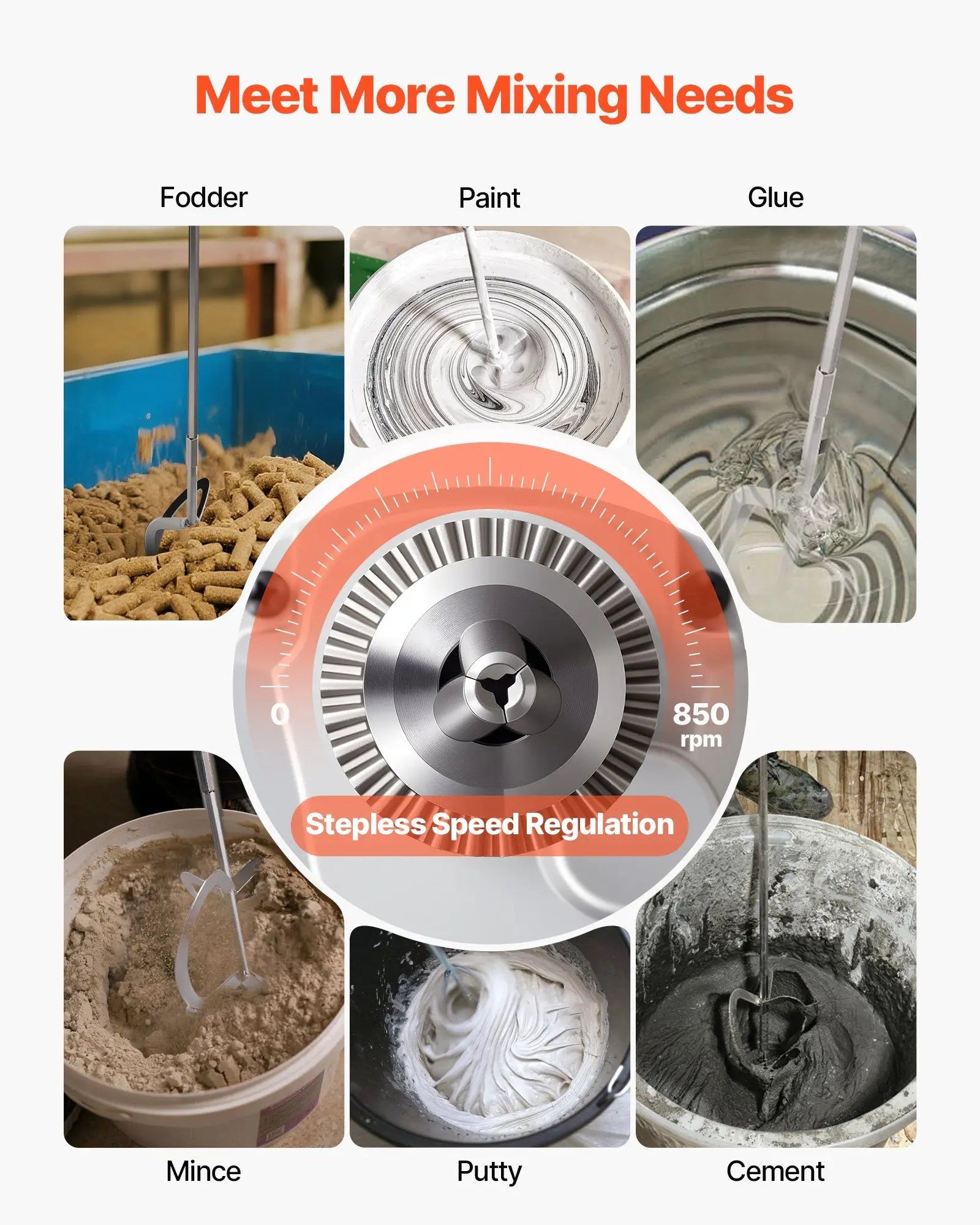 1100W Electric Drill Mixer 5/8" 0-850 RPM Mixing & Drilling Machine with D-Handle Handheld Cement Mixers for Fodder Paint Cement