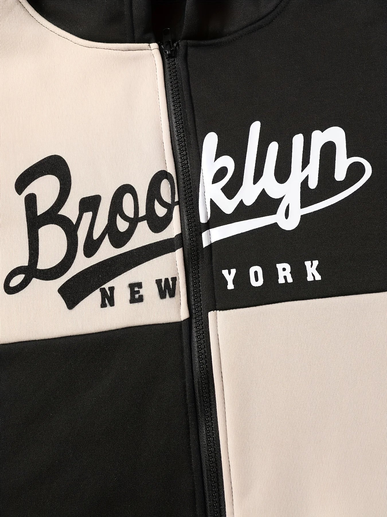 2-piece men's autumn/winter printed zip-up long-sleeved sweatshirt and sweatpants set