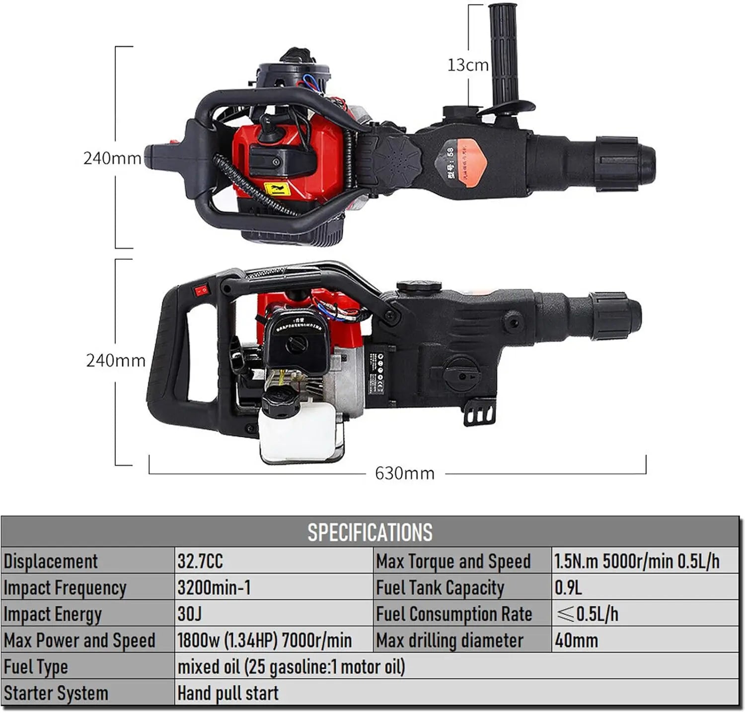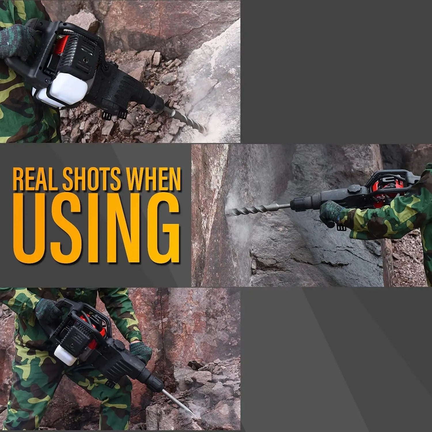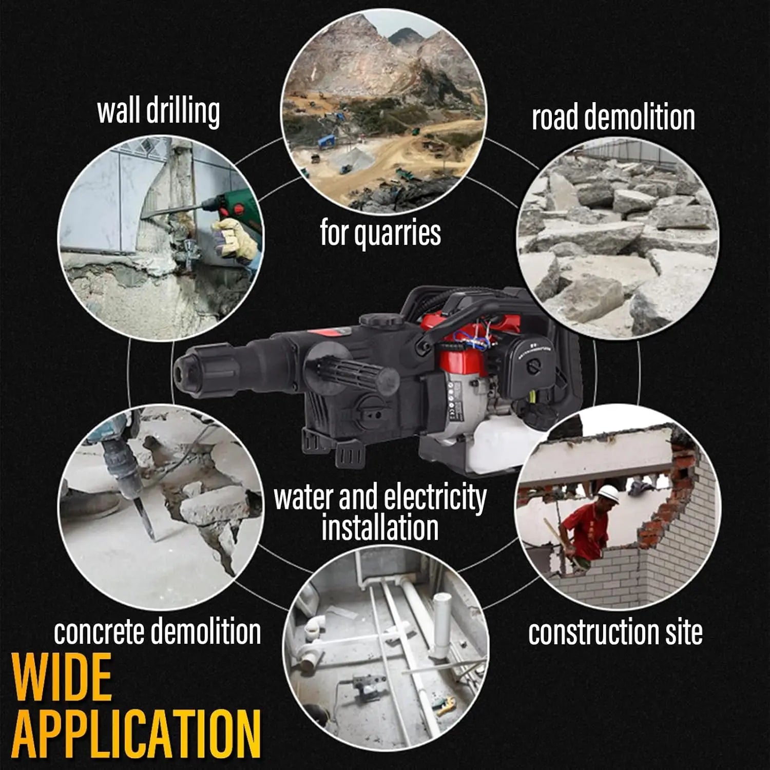 32.7CC 2 Strok Petrol Demolition Hammer 1800W 30J Gasoline Concrete Breaker Post Driver Fende Knocker Jack Hammer 3X Drills