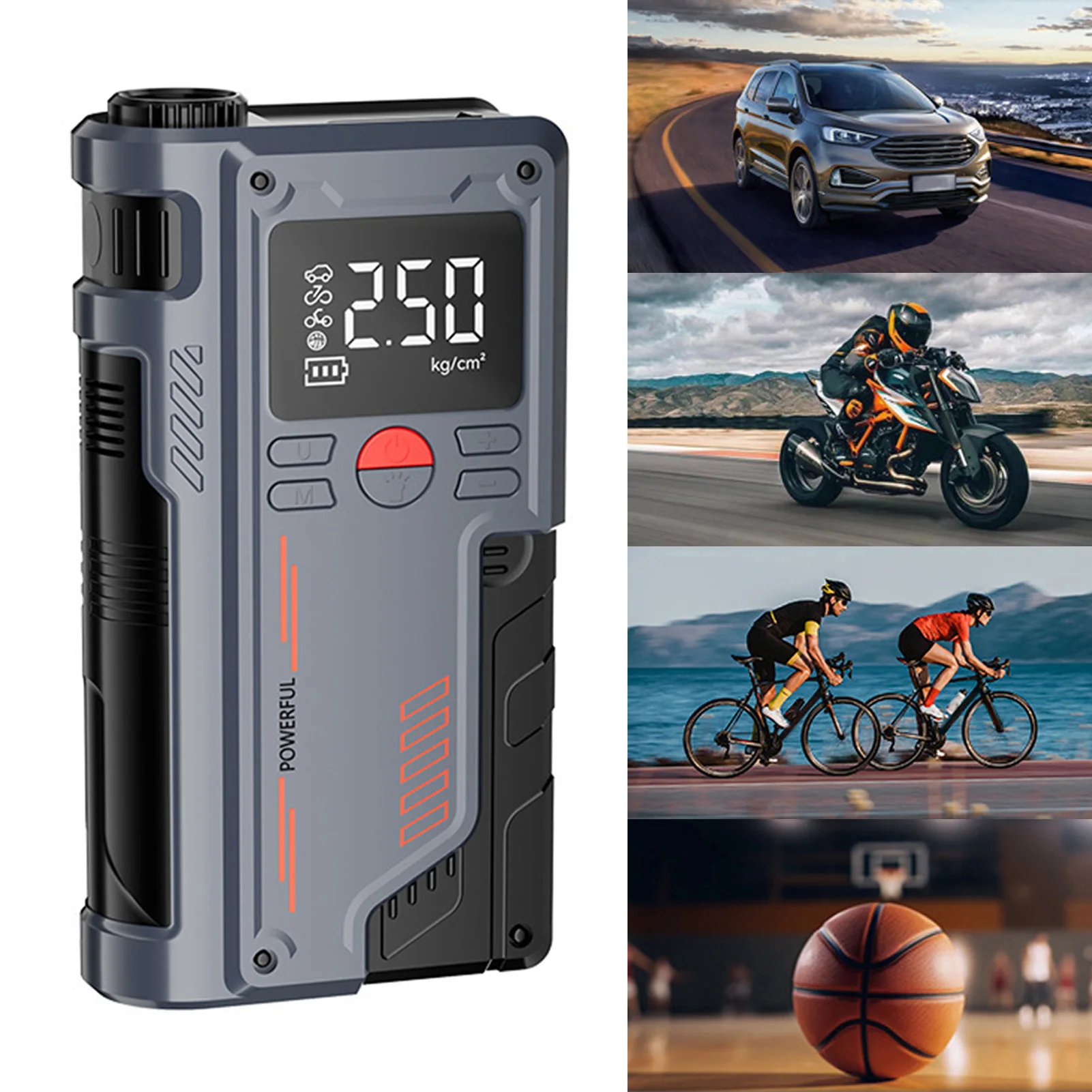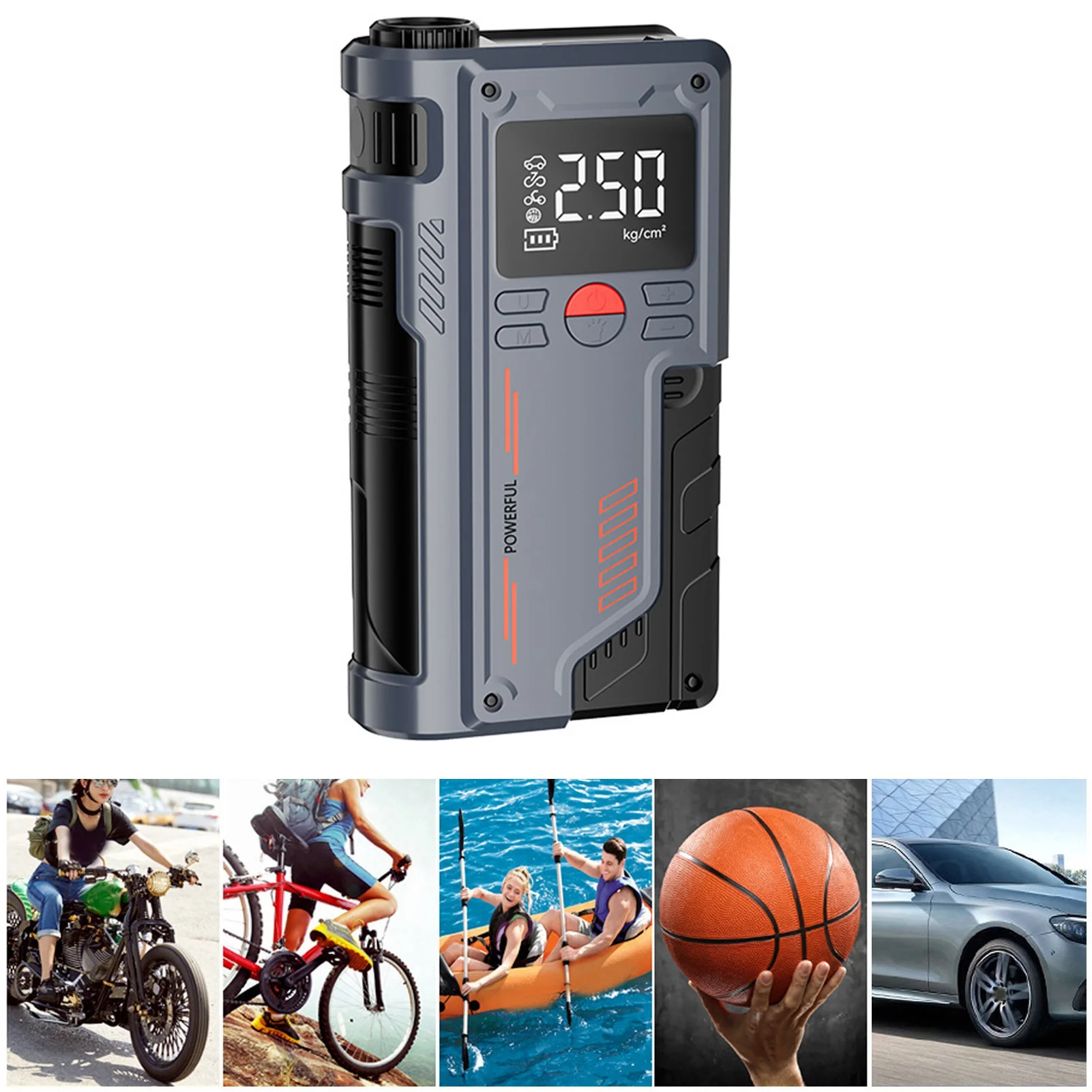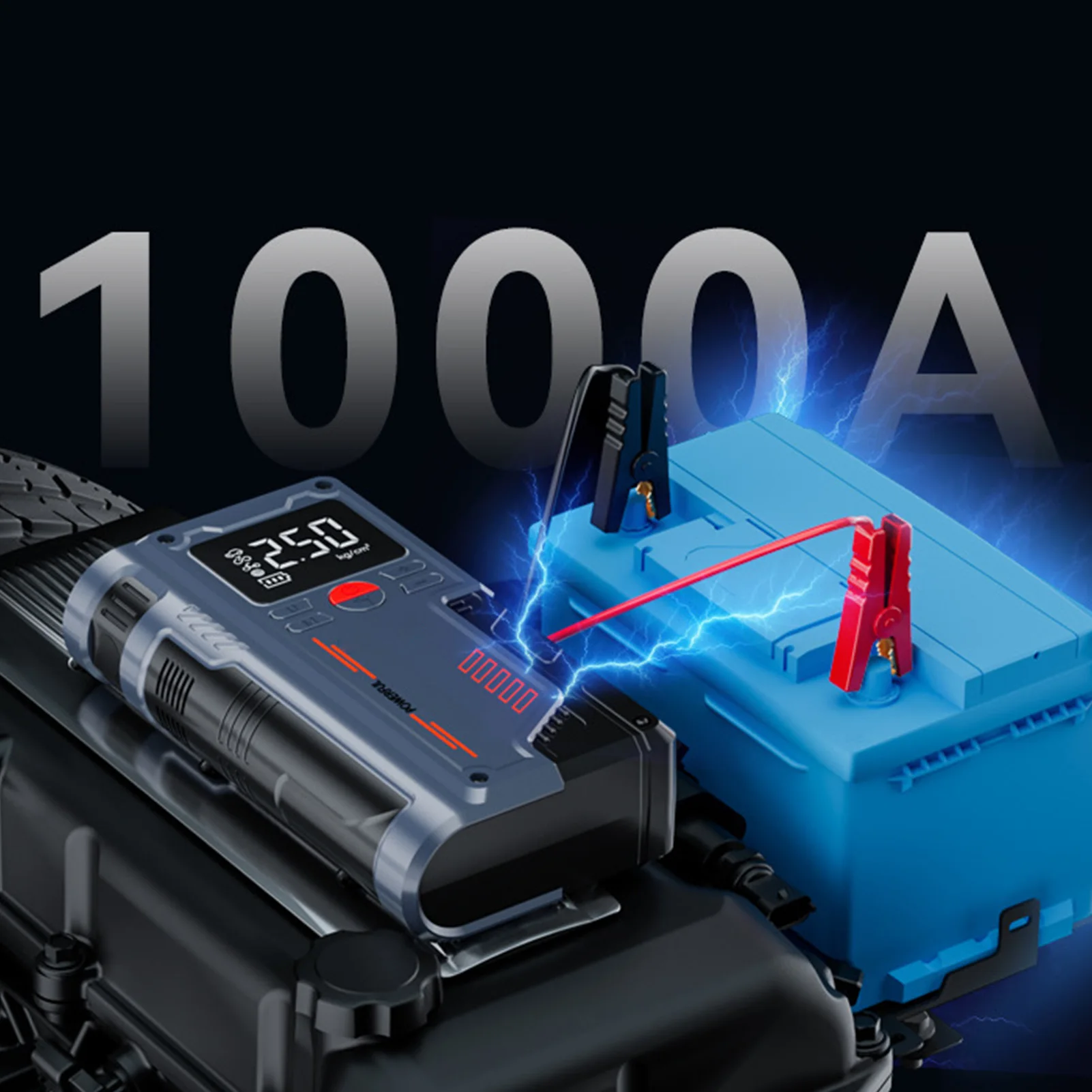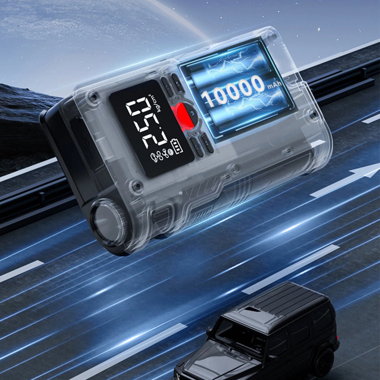 Car Battery Jump Starter with Air Compressor USB Charging Enhanced Safety Jump Starter Electric Pump Digital Display for Bike