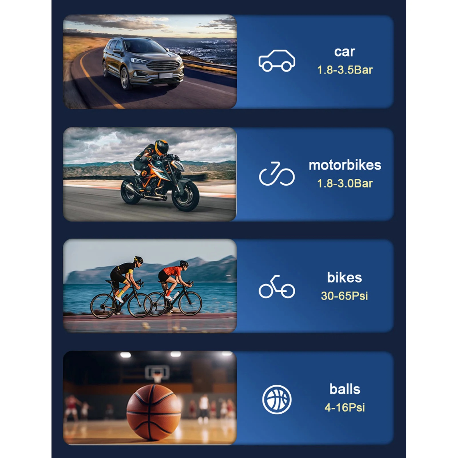 Please do not use the air pump function continuously. When it becomes very hot, cool it down for a few minutes before continuing to inflate the tires. When you first receive the product, fully charge it, even though it says it is fully charged. It is recommended to start the car at more than 75% power. Charge your car emergency kit every 2 to 3 months to activate the battery and extend the lifeapan of your portable car battery jump starter.