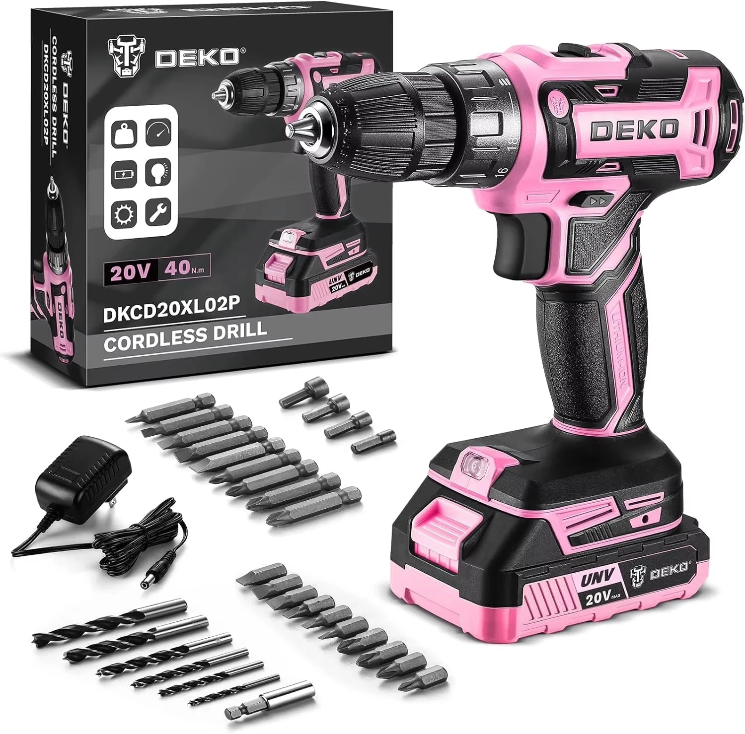 DEKO Cordless Drill 20V Electric Power Drill Set Drills Cordless with Battery and Charger Drill Driver Power Drill Cordless