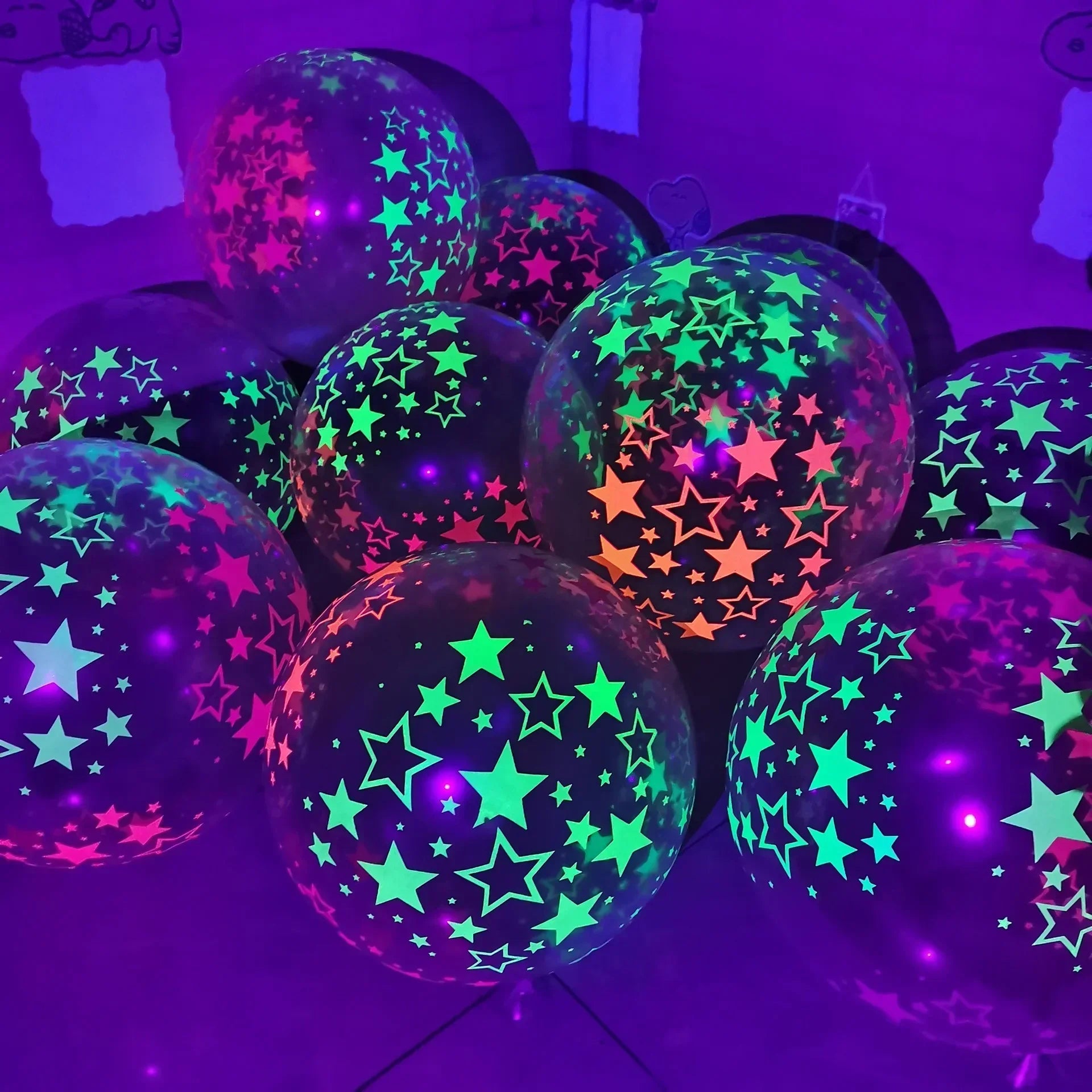 Happy Birthday Neon Glow Balloons Glow in Blacklight Fluorescent Balloons for Neon Birthday Glow 80s 90s Theme Party Decor