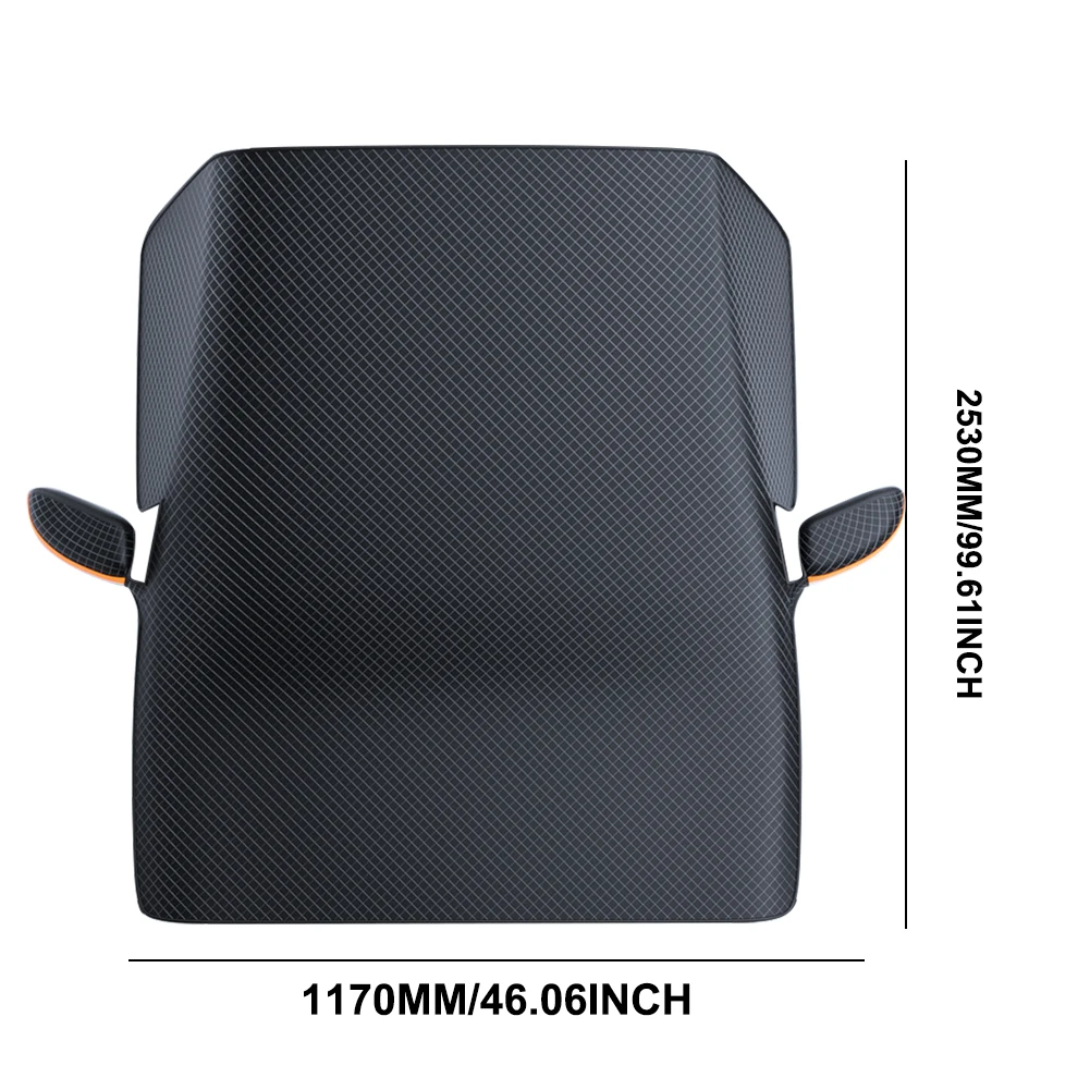 1. All-Weather Protection: This car front windscreen cover prevents your car's front windshield from being covered with ice and snow, while also providing resistance against direct sunlight. It effectively protects your car's interior from harmful UV rays, helping to maintain its condition.
