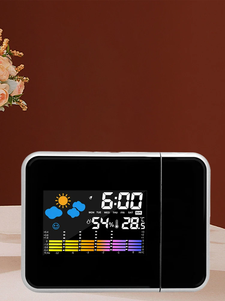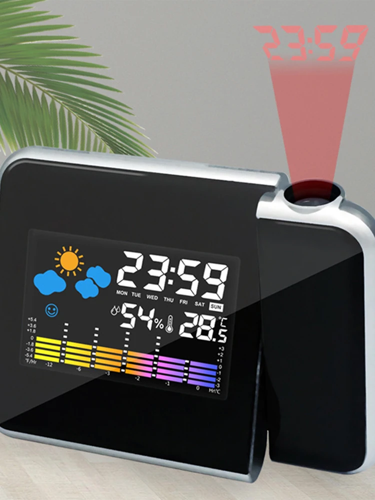 1. Practical: This smart clock features a digital LED projection display that shows the time in either 12 or 24-hour format. It also includes a weather forecast feature and an alarm with a snooze function, ensuring you stay informed and punctual.