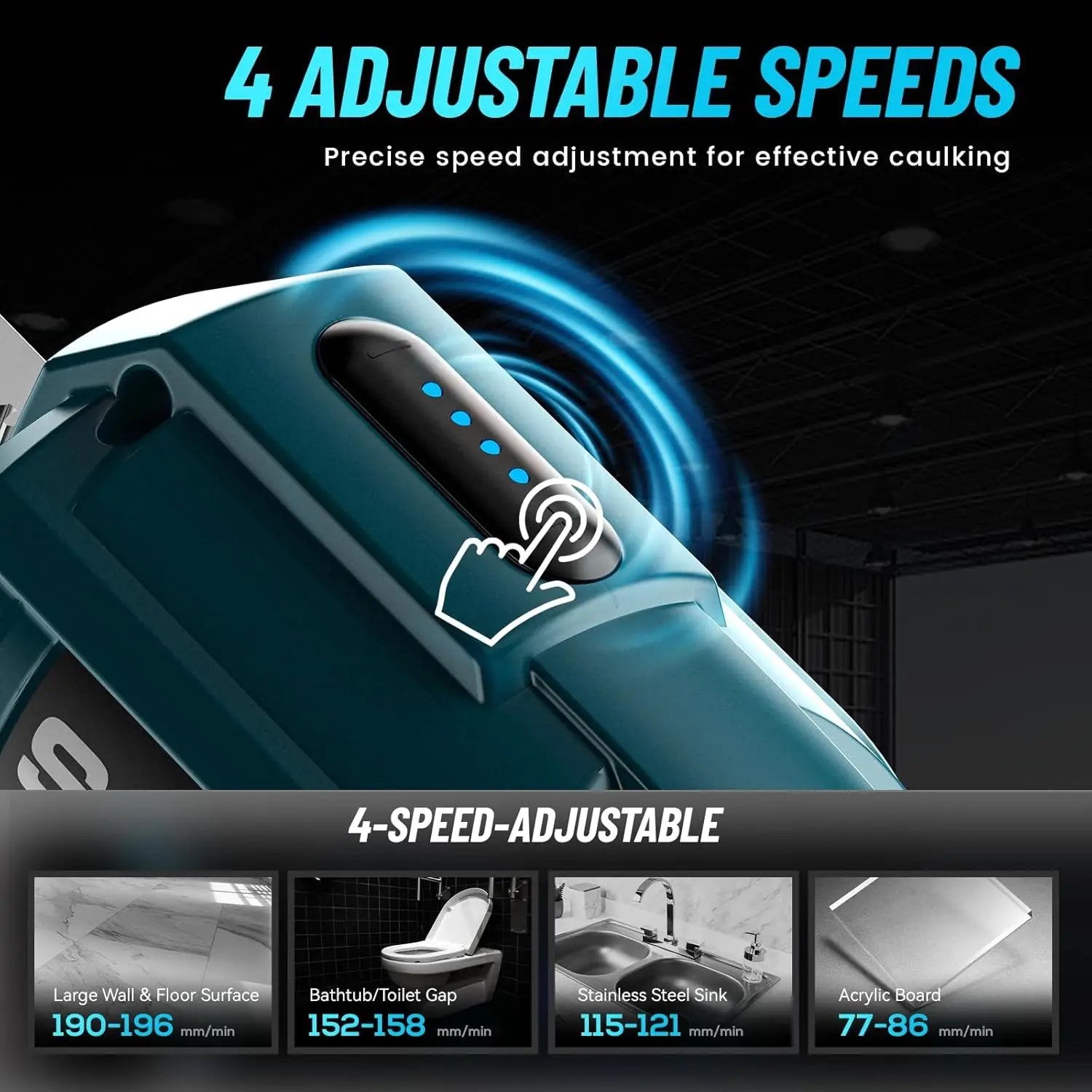 Seesii Cordless Caulking Gun 21V Battery Caulk Gun Electric Glue Gun 4 Speeds Auto Retract Adhesive Gun Kit for Filling Sealing