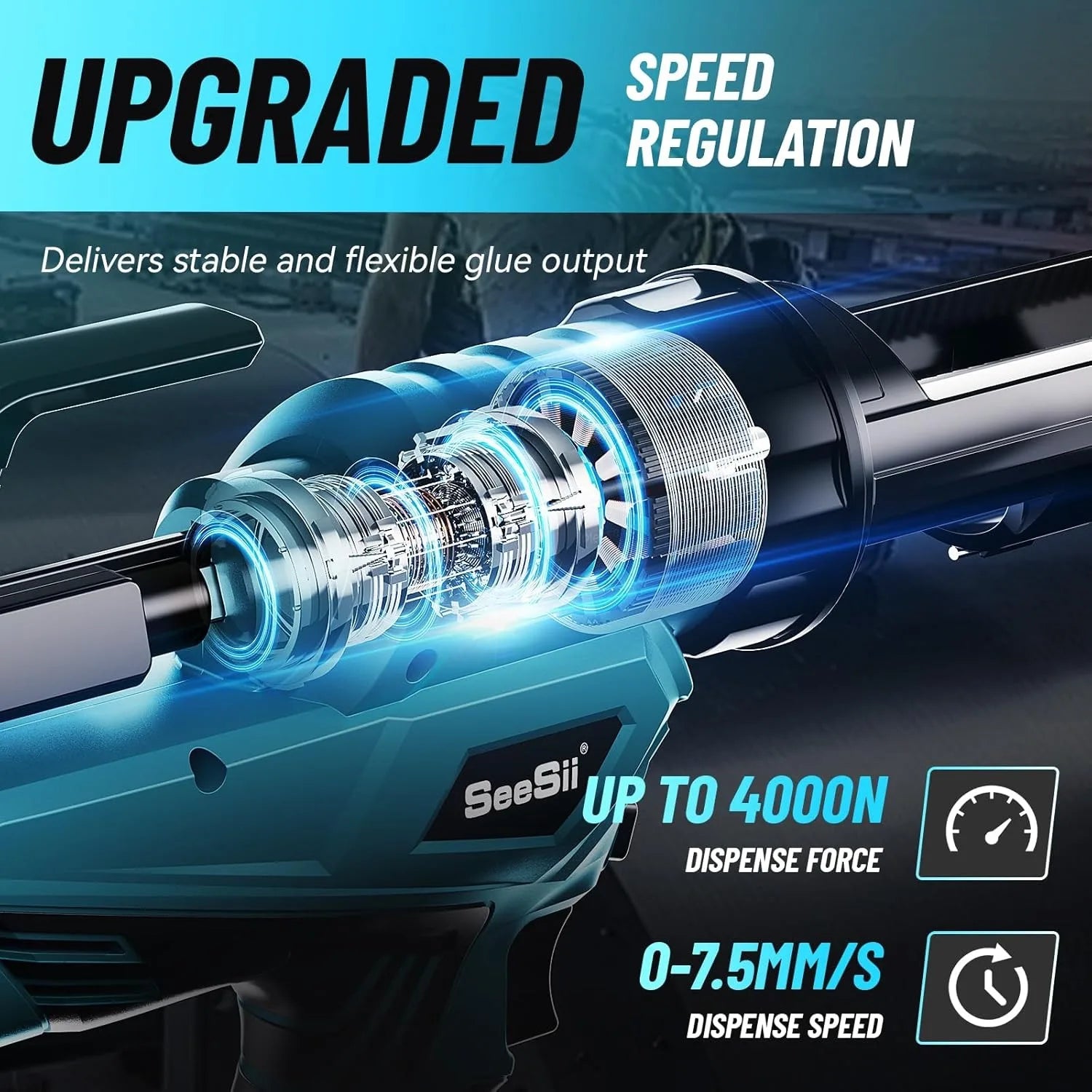 SEESII Electric Caulking Gun 10oz Cordless Caulking Gun 2pcs 2000mAh Battery 6 Adjustable Speeds Adhesive Gun Kit Power Tools